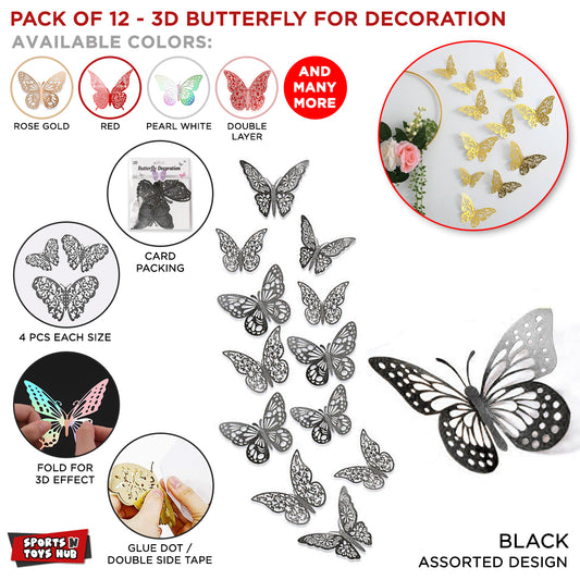 3D Metallic Butterfly Wall & Balloon Decoration Set – Shiny Butterflies For Party, Birthday, Wedding, Home, Event & Backdrop Decor Supplies