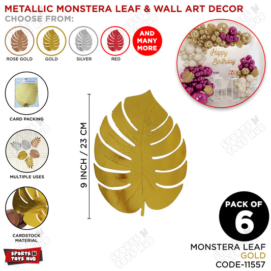 3D Metallic Monstera Leaf For Party Decoration - Pack Of 6
