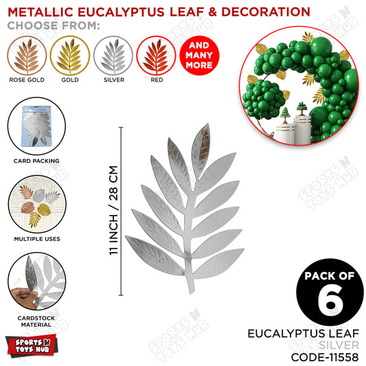 3D Metallic Eucalyptus Leaf For Party Decoration - Pack Of 6