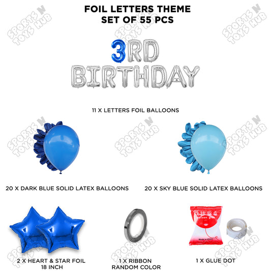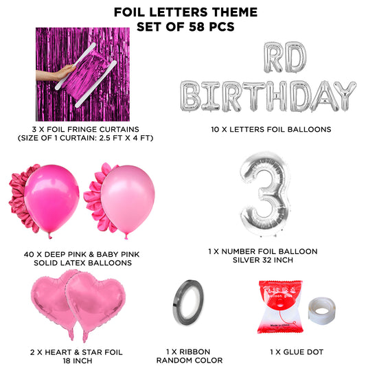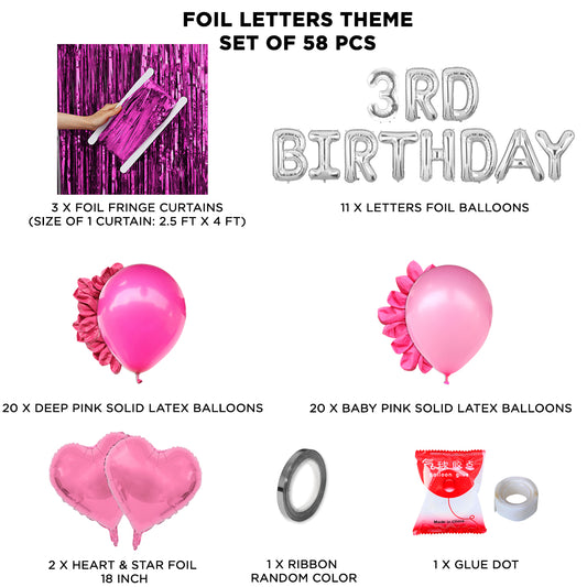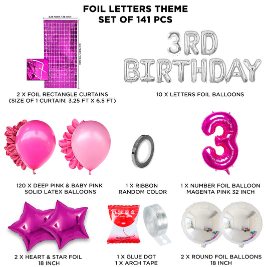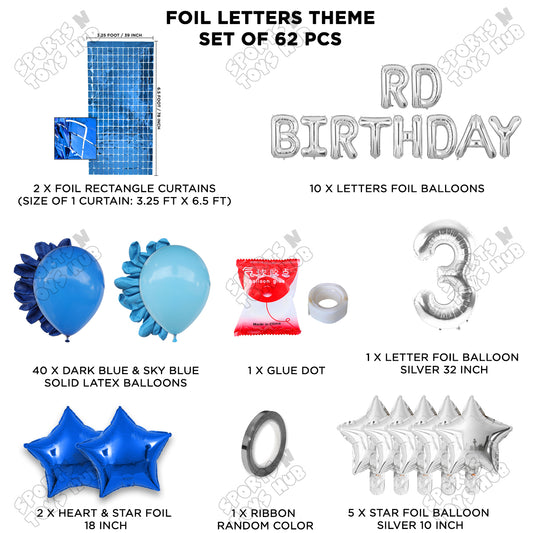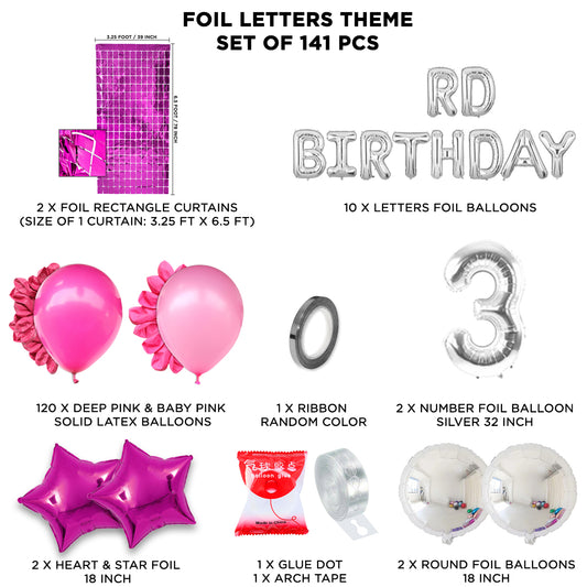 3RD Birthday Foil Letter Theme With Rectangle Curtain