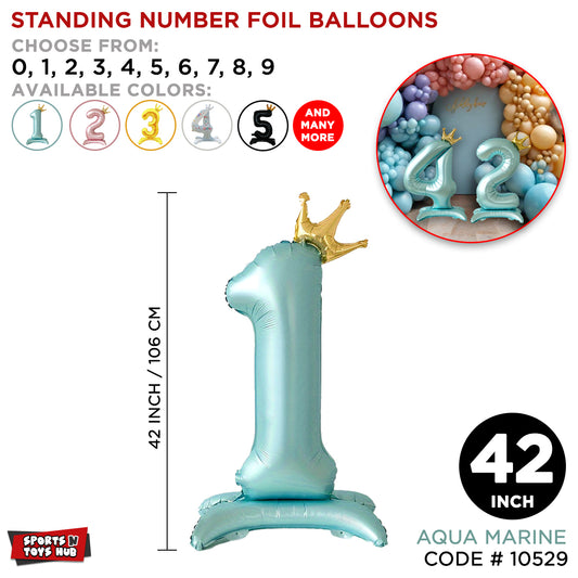 42 Inch Aqua Marine Crown Number Foil Balloon Collection