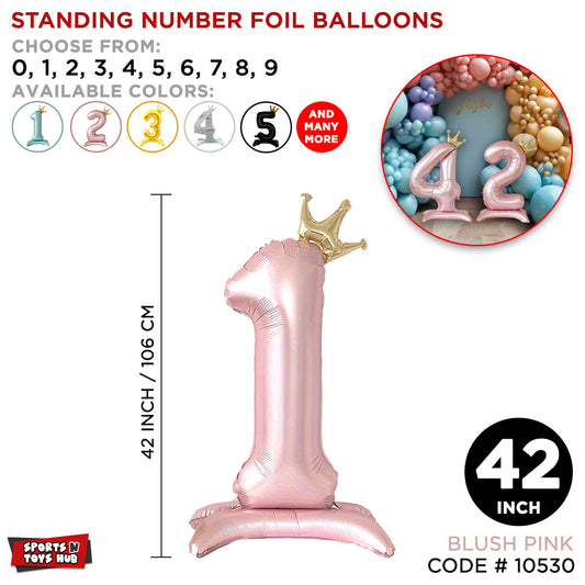 42 Inch Blush Pink Crown Number Foil Balloon Collection