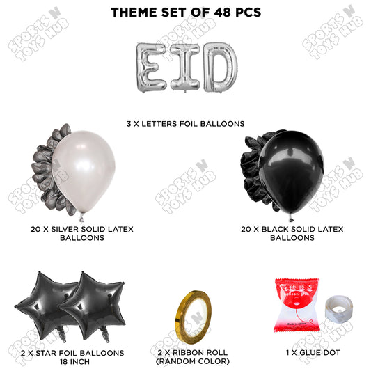 48 Pcs Eid Silver Foil Balloon Garland Theme Collection