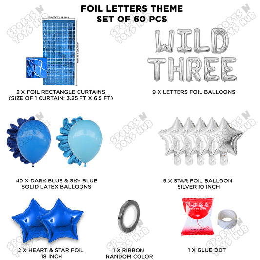 3RD Birthday Wild Three Foil Letter Theme With Curtain