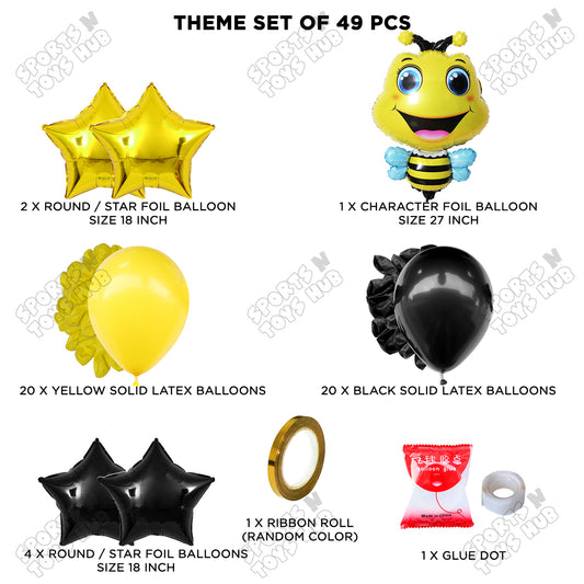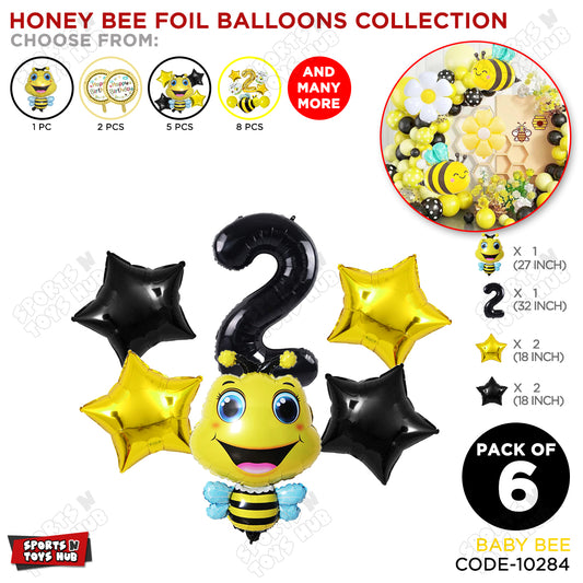Baby Bee Foil Balloon Set With Number Collection - Pack Of 6
