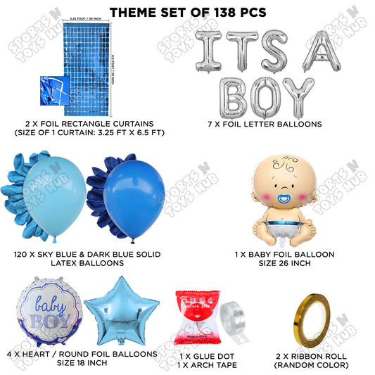 Baby Boy Foil Balloon Set With Its A Boy Foil Letter Arch Blue & White Color Theme - Pack Of 138