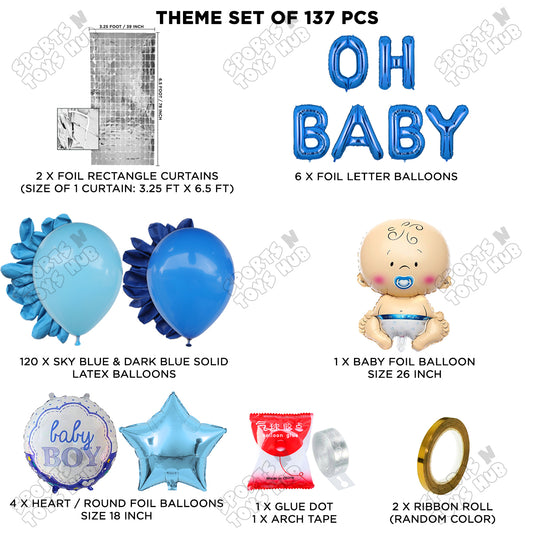 Baby Boy Foil Balloon Set With Oh Baby Foil Letter Arch Blue & White Color Theme - Pack Of 137