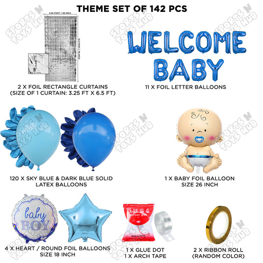 Baby Boy Foil Balloon Set With Welcome Baby Foil Letter Arch Theme - Pack Of 142