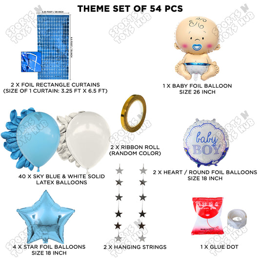 Baby Boy Foil Balloon Rectangle Curtain Theme - Pack Of 54