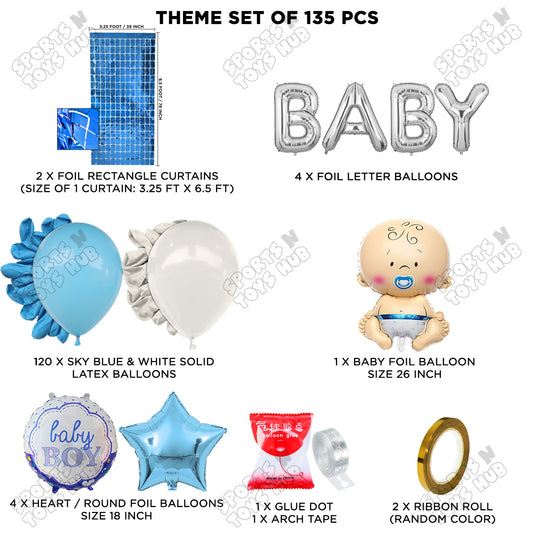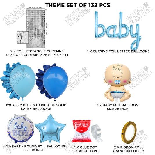 Baby Boy Foil Balloon With Baby Cursive Foil Letter Arch Theme - Pack Of 132