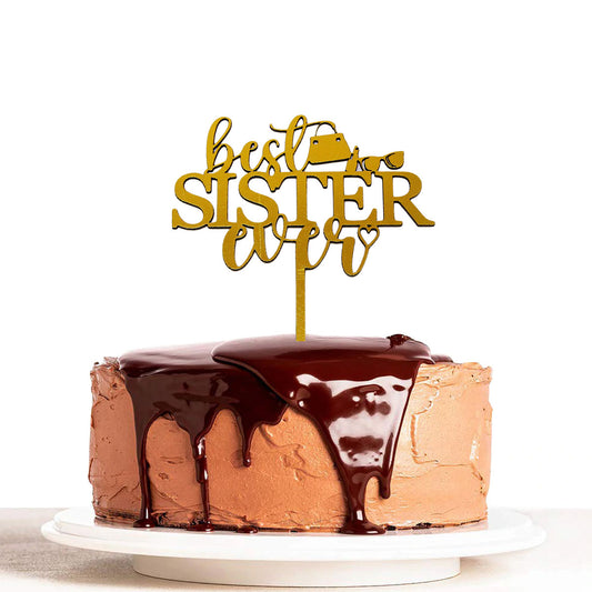 Best Sister Ever Painted Wooden Cake Topper