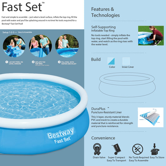 12 Ft Bestway Inflatable Fast Set Swimming Pool For Kids - 57273
