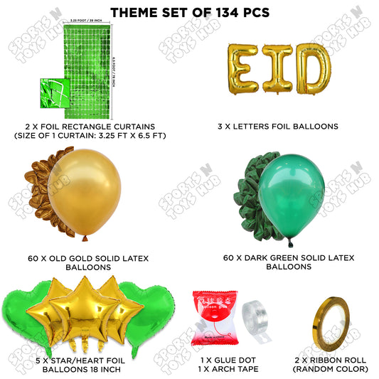 134 Pcs Eid Gold Foil Balloon Arch Theme Collection