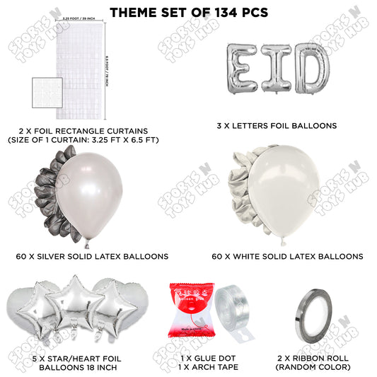 134 Pcs Eid Silver Foil Balloon Arch Theme Collection