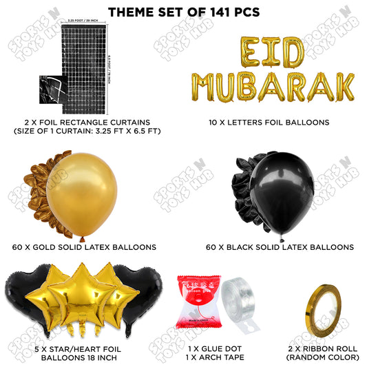 141 Pcs Eid Mubarak Gold Foil Balloon Arch Theme Collection