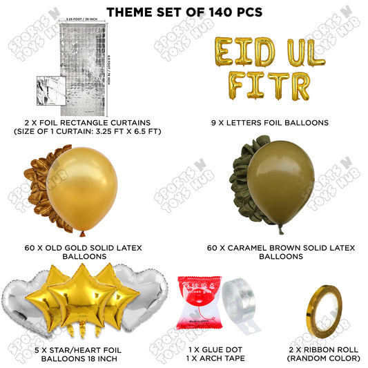 140 Pcs Eid Ul Fitr Gold Foil Balloon Arch Theme Collection