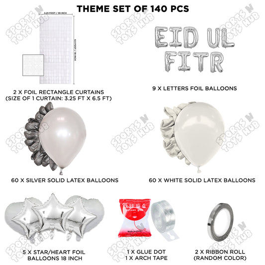 140 Pcs Eid Ul Fitr Silver Foil Balloon Arch Theme Collection