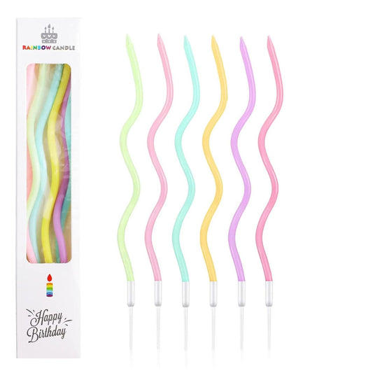 Curvy Macaron Slim Long Flammable Candles - Pack OF 6