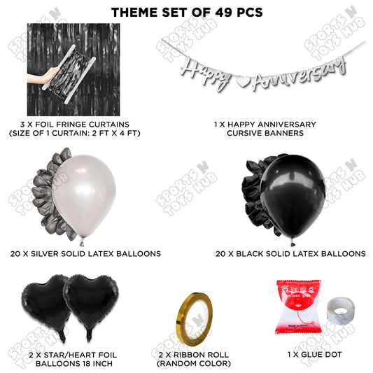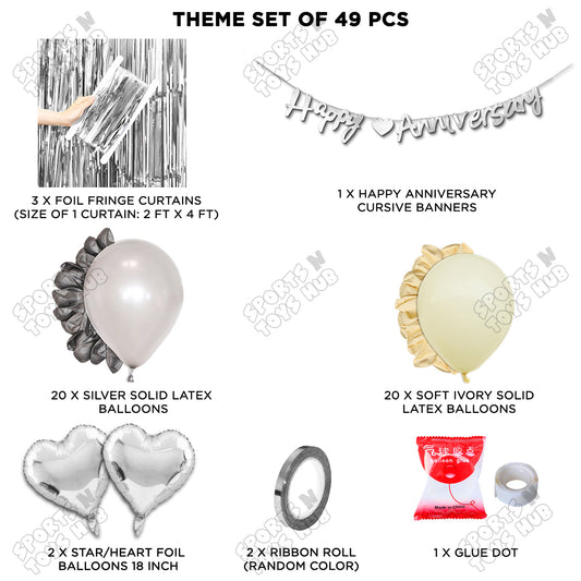 Happy Anniversary Silver Cursive Banner Curtain Theme Collection
