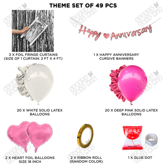 Happy Anniversary Pink Cursive Banner Curtain Theme Collection