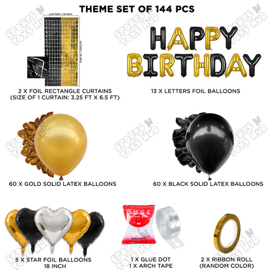 Happy Birthday Cursive Banner Theme - Gold & Black