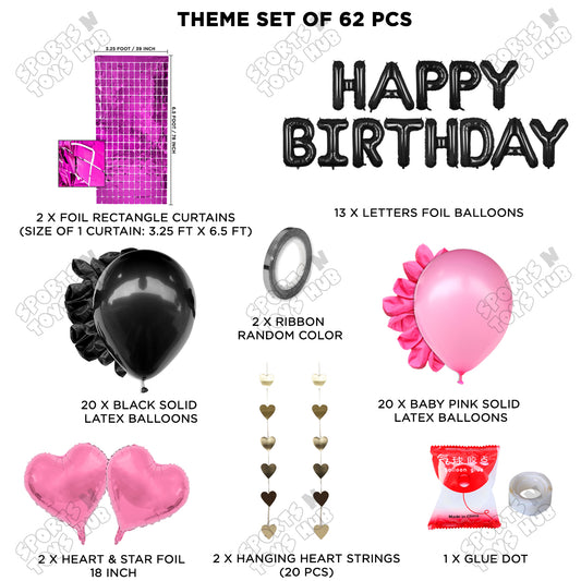 Happy Birthday Foil Letter Theme - Black & Baby Pink
