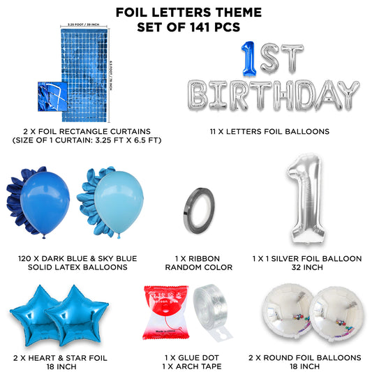 1st Birthday Foil Letter Arch Theme - Blue