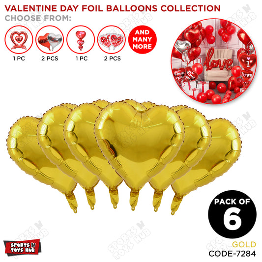 18 Inch Heart Shape Foil Balloon Set Collection - 6 Pcs