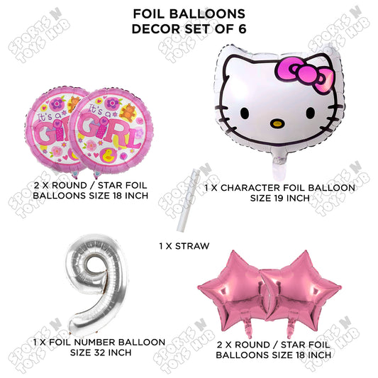 Hell0 Kitty Foil Balloon Set With Number Collection - Pack Of 6