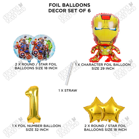 Iron-M@n Foil Balloon Set With Number Collection - Pack Of 6