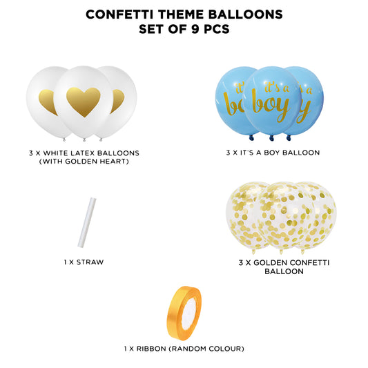 Its a Boy Printed & Confetti Balloons Bouquet - 9 Pcs