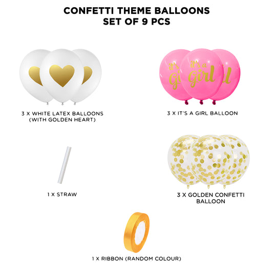 Its a Girl Printed & Confetti Balloons Bouquet - 9 Pcs