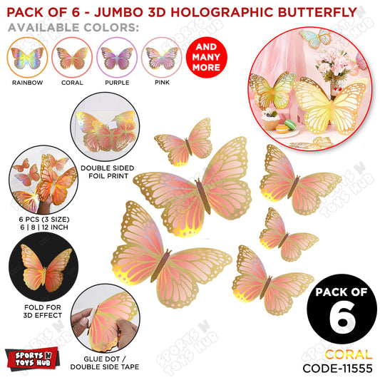 Jumbo 3D Holographic Butterfly For Ballon Arch & Wall Decor – Set Of 6