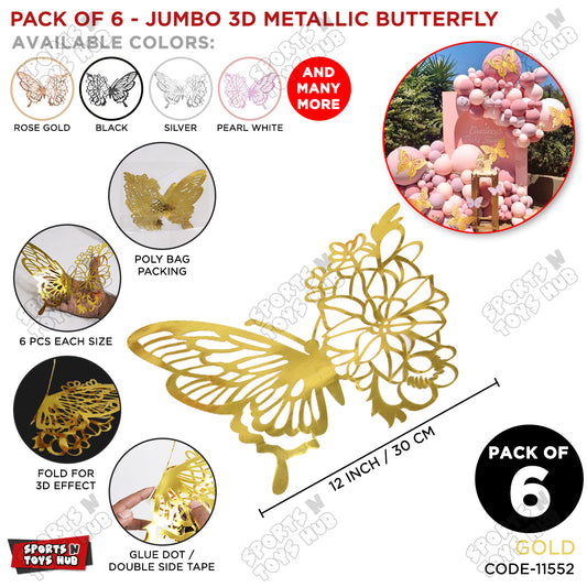 Jumbo 3D Metallic Butterfly For Balloon Garland & Wall Decor – Set of 6 (12-Inch)