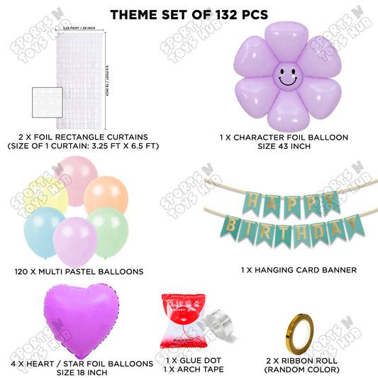 Jumbo Smiley Purple Flower Foil Balloon & Card Banner Arch Theme Collection