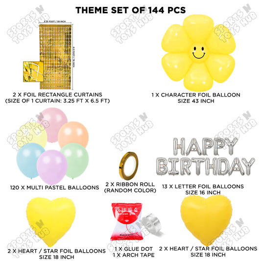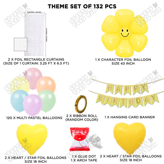 Jumbo Smiley Yellow Flower Foil Balloon & Card Banner Arch Theme Collection