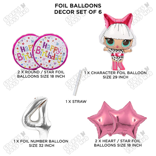 L.0.L Diva Foil Balloon Set With Number Collection - Pack Of 6