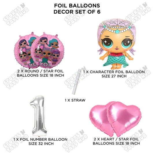 L.0.L Merbaby Foil Balloon Set With Number Collection - Pack Of 6