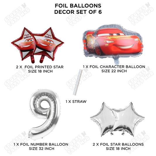 Mc-Queen Foil Balloon Set With Number Collection - Pack Of 6