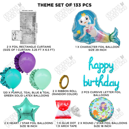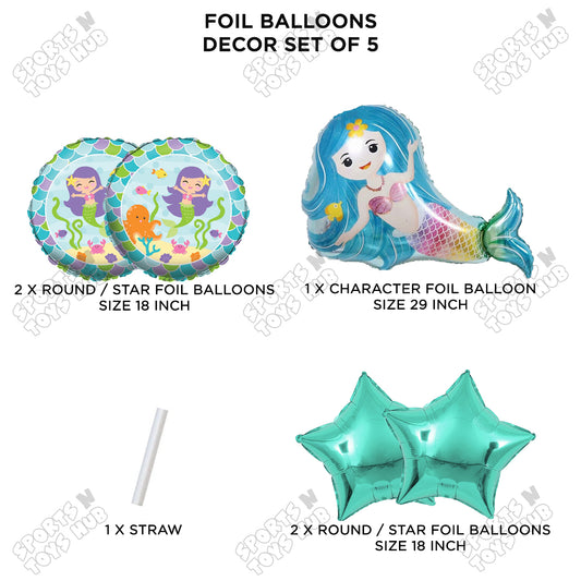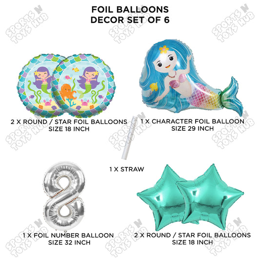 Mermaid Foil Balloon Set With Number Collection - Pack Of 6