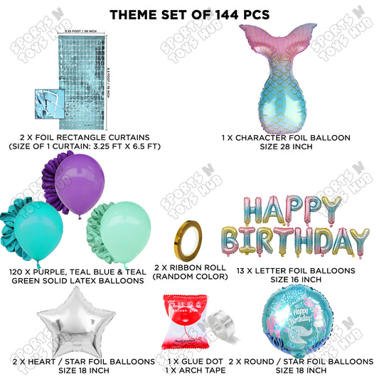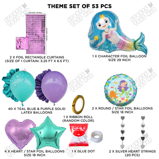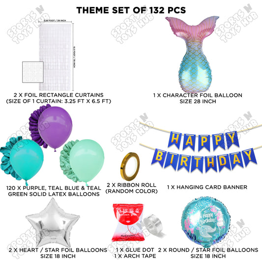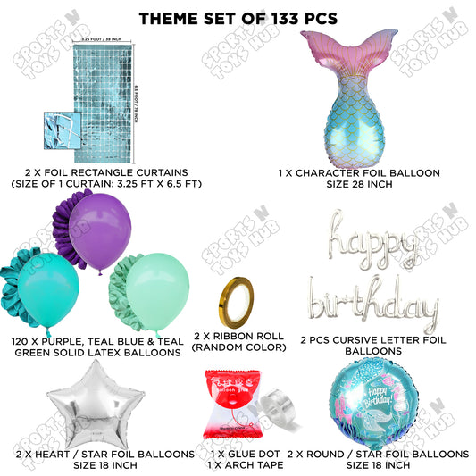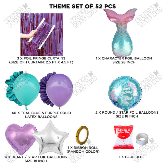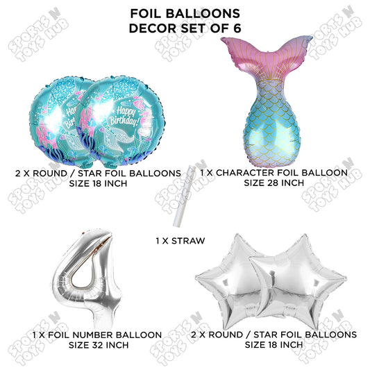Mermaid Tail Foil Balloon Set With Number Collection - Pack Of 6