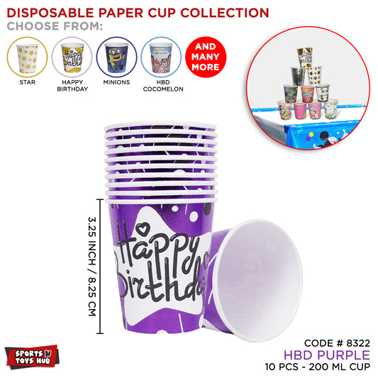 Purple Shinny Happy Birthday Printed Plates & Glasses - 10 Pcs