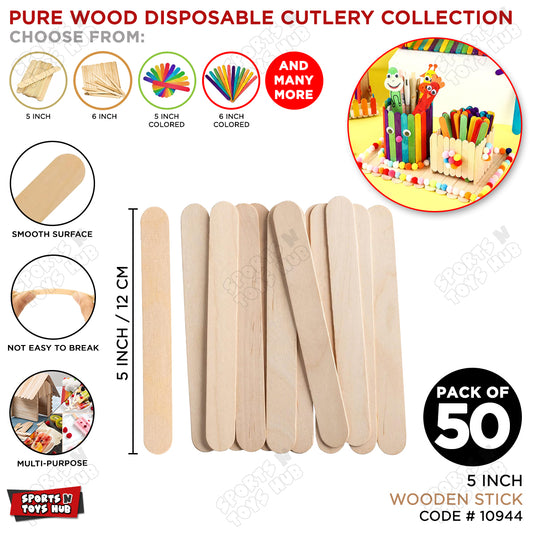 Pure Wooden Disposable Ice Cream Stick Collection - 50 Pcs