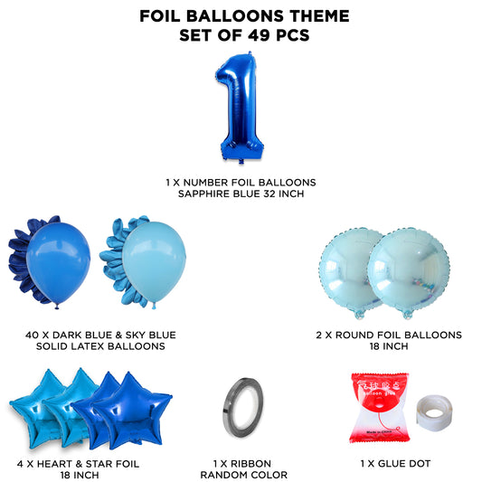 1ST Birthday Foil Letter Theme With Rectangle Curtain - Blue