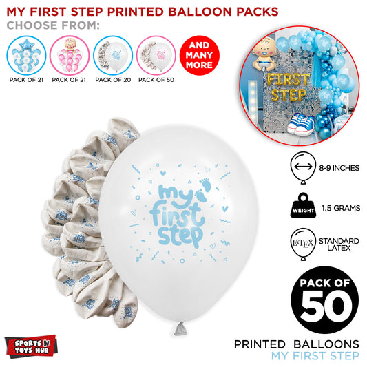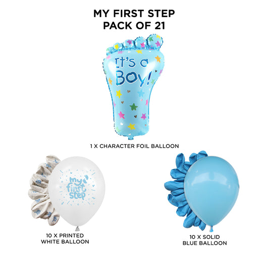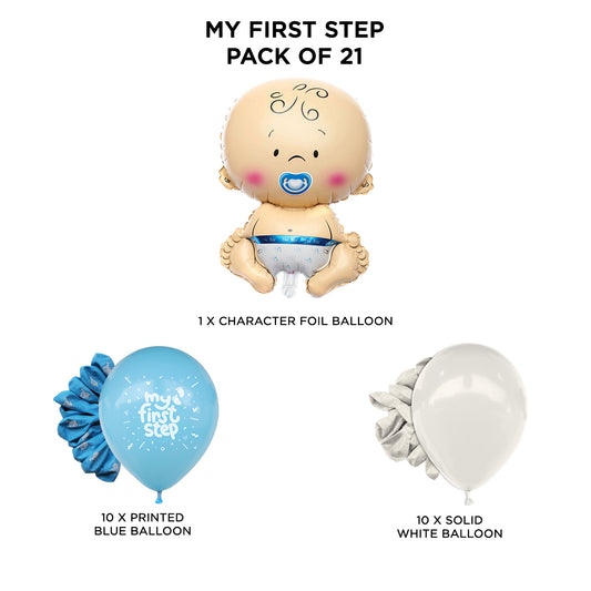 Celebrate a baby's first steps with adorable decorations, tableware, and accessories featuring cute footprints and milestone-themed designs! delightful party supplies balloons cake topper banners