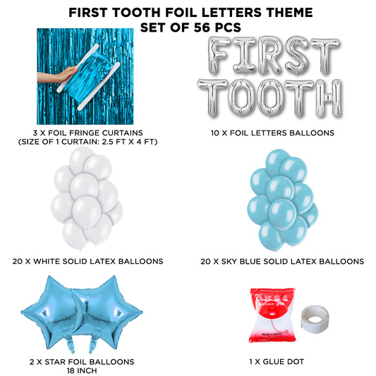 1st Tooth Foil Letters Theme Without Curtain - Blue