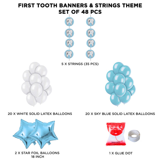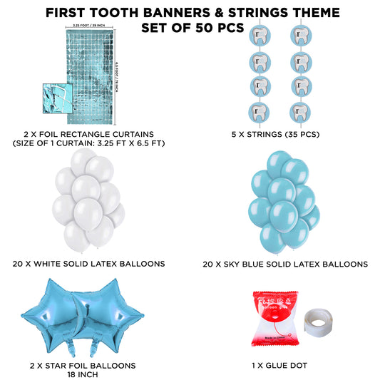 First Tooth Foil Balloon Theme With Rectangle Curtain - Blue