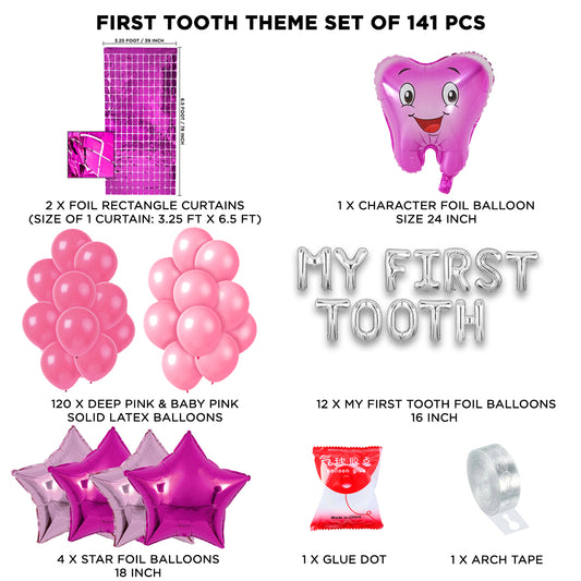 First Tooth Foil Balloon Theme With Curtain - Pink