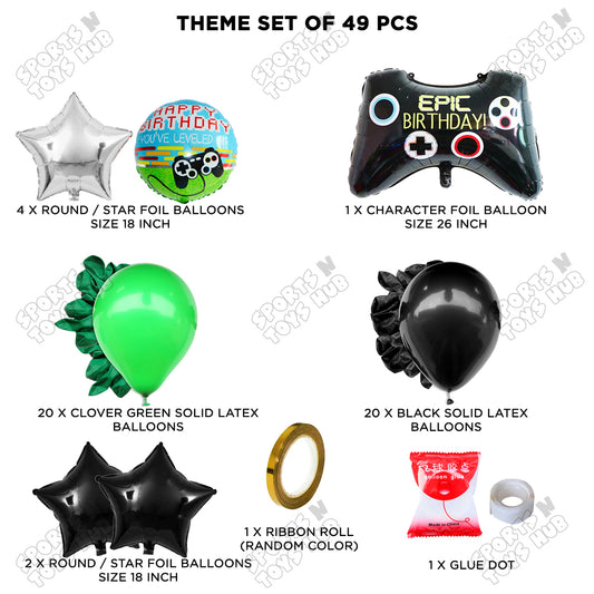 Game Controller Foil Balloon Set With HBD Card Banner Arch Theme - Green & Black