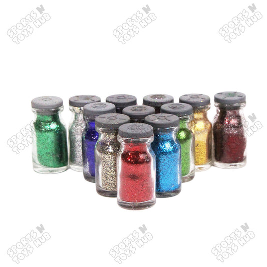 Multipurpose Dust Glitter Set, 12 Assorted Colors in Mini Glass Bottles, Slime & DIY Projects